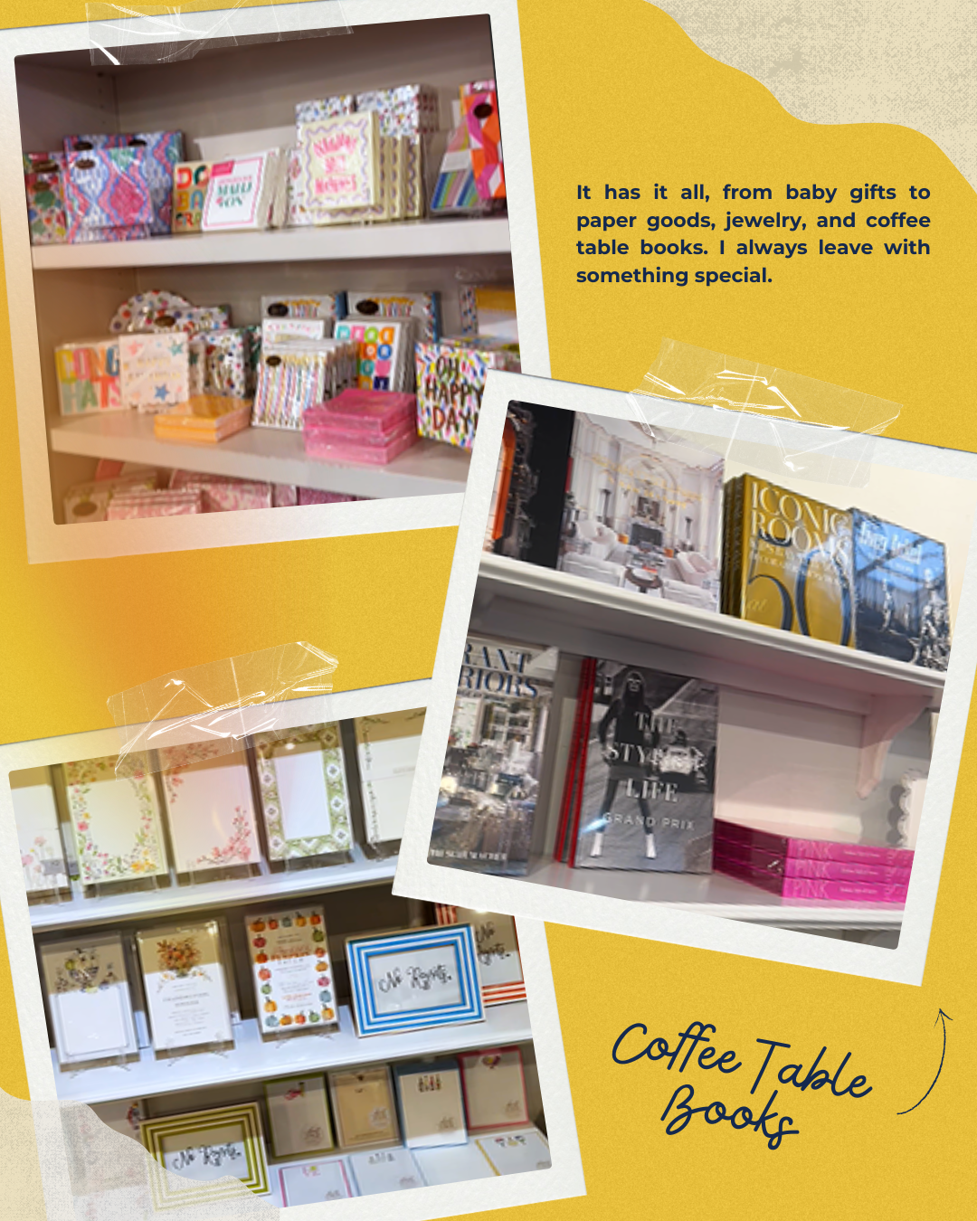 They also carry adorable jewelry and some of the best coffee table books. I always end up flipping through a few and adding one to my list.